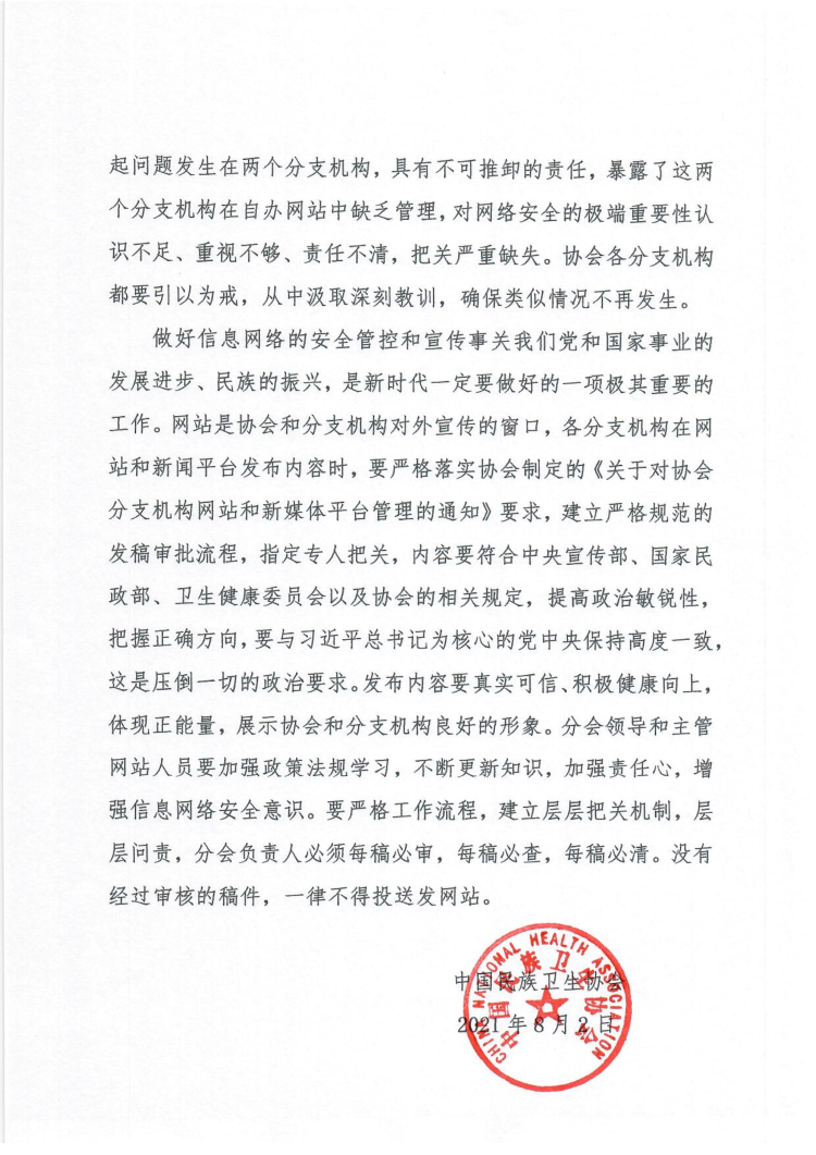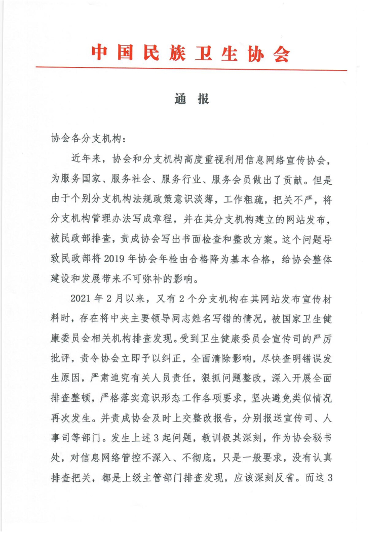中国民族卫生协会关于废止使用部分分支机构公章公告