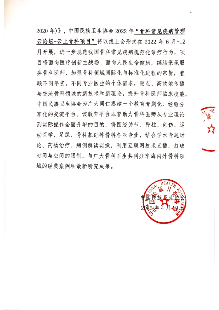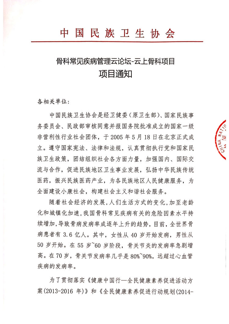 骨科常见疾病管理云论坛项目通知