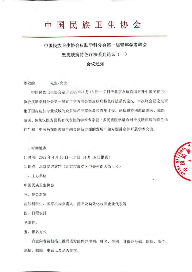 皮肤学科分会第一届青年学者峰会暨皮肤病特色疗法系列论坛(一)会议通知