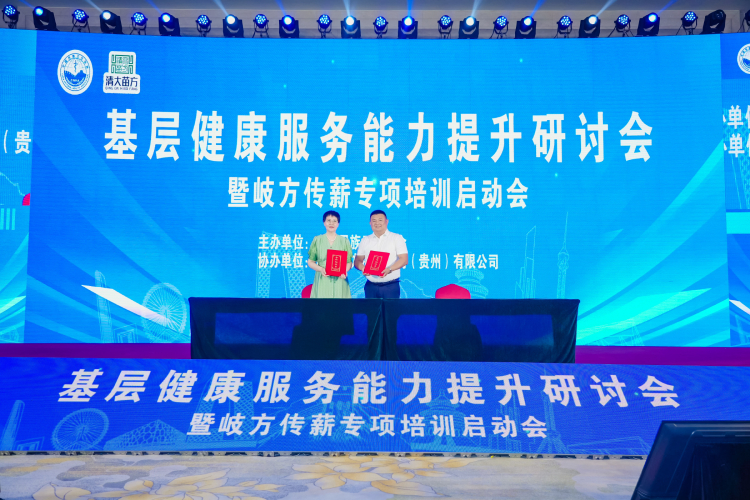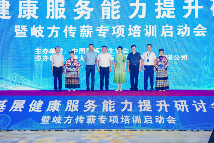 2023年6月18日,由中国民族卫生协会主办,基层卫生人才工作委员会承办,清大苗方民族制药协办的,基层健康服务能力提升研讨会暨岐方传薪专项培训启动会在北京顺利召开。原中华人民共和国卫生部部长高强、中国民族卫生协会会长吴英萍、中国民族卫生协会常务副会长颜晓文、国医大师李佃贵、国医大师孙光荣传承工作室负责人孙文正、清大苗方民族制药董事长蒋建超,以及中国民族卫生协会相关领导、清大苗方各省区项目负责人,和来自全国各地的500多名基层医生出席了本次大会,会议由中国民族卫生协会常务副秘书长刘滨主持。